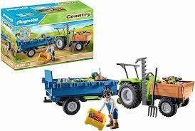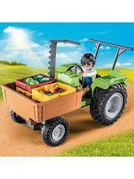There's a lot to do at this harvest season! Lower the mower arm to harvest your crop. Then, load all your produce into the front compartment and the big blue trailer. Potatoes, strawberries, carrots, garlic, lettuce, cauliflower, and more, plus milk, juice, and eggs - it's all ready to be hauled to the farmer's market! The joy of farming comes to life with the Playmobil Harvester Tractor and Trailer set. Playmobil Harvester Tractor with Trailer Toy harvesting tractor with trailer, loads of accessories Encourages imaginative play, storytelling Tractor features lowering mower, front storage space. Features detachable trailer for hauling the harvest 42 pieces - includes farmer play figure, tractor, trailer Detailed building instructions included High-quality materials and construction All new PLAYMOBIL farm world playsets are made from more than 80% sustainable materials Made in Germany Toys. Imaginative Play. Trains & Vehicles.