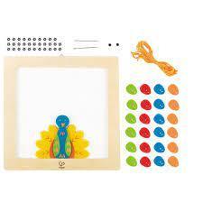 Stitch a colorful peacock with this children embroidery craft kit by Hape. Peacock Wooden Frame Kids Embroidery Kit will make not only a smiling peacock proud, but your beginner embroider, too! Design and plan your own color combinations and start sewing the pieces. This first embroidery set from Educational Toys Planet comes with 65 pieces including felt feather pieces, canvas base, embroidery yarn, plastic shapes that fix the felt pieces, and special sewing needles. The Hape Proud Peacock sewing craft kit comes with a nice wooden frame that stretches the canvas as your child embroiders the work, and displays the finished embroidery creation. The wooden frame includes the metal loop to hang the finished peacock sewing project in your room. Peacock Wooden Frame Kids Embroidery Kit is a terrific craft idea to hand-made a holiday or birthday present for a friend, mom or dad, grandparents, teacher, or anybody you love.