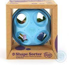 Green Toy Shape Sorter puts an eco-friendly spin on a classic play pattern. Made in the USA from food-safe, 100% recycled plastic milk jugs that save energy and reduce greenhouse gas emissions, the Shape Sorter helps develop recognition of shapes and colors while also encouraging eye-hand coordination, problem solving, and fine and gross motor skill development. The two-part elliptical Shape Sorter and 8 colorful shapes (2 stars, 2 circles, 2 squares, 2 triangles) are the perfect size and weight for little hands. Each piece slides easily into the chute cut-outs on both the top and bottom of the Sorter, which opens with a simple twist, separating the two halves and letting the pieces out again. No BPA, phthalates, PVC or external coatings, and meets FDA food contact standards. Dishwasher safe for easy cleaning. Packaged with recycled and recyclable materials and printed with soy inks. Recommended for ages 6 months and up. Color combinations may vary.