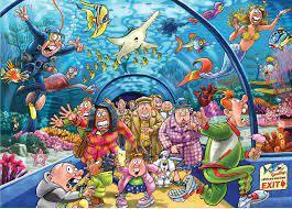 Join the crowds experiencing life under the sea at the local aquarium. With all kinds of weird and wonderful species to see up close, it’s a magical adventure for both adults and children alike. In the ocean tunnel, Granny and Grandad Wasgij can walk alongside tropical fish, turtles and even see a mermaid! However, has one creature got a little too close for comfort? Use your imagination and the clues provided on the box, to piece together what will happen next. This is the scene you will have to puzzle. Wasgij Original is the puzzle concept where you must use your imagination and clues provided to piece together not what you see on the box, but what the people on the box see! The finished size of the puzzle measures 68 x 49 cm (approximately) and has been produced using high-quality 100% recycled board and precision die-cutting techniques to ensure every jigsaw piece maintains its original shape time and time again.