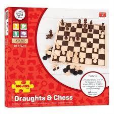 Wooden Draughts and Chess Set Board Game by Big Jigs 3+